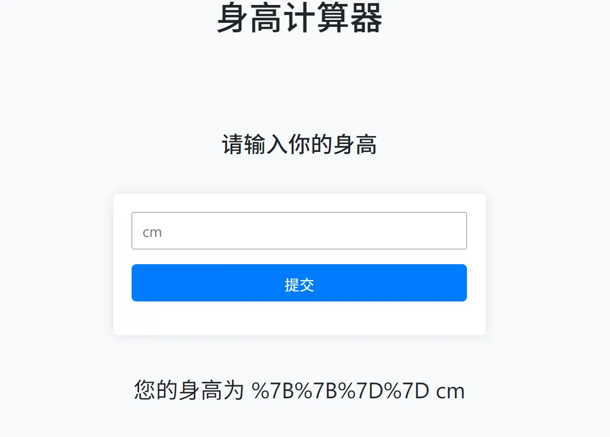 fetch("{% println!(__tera_context) %}")Error while rendering: Error { kind: Msg("Failed to parse '__tera_one_off'"), source: Some(Error { kind: Msg(" --> 18:35 |18 | <div class="result">您的身高为 {% println!(__tera_context) %} cm</div> | ^--- | = unexpected tag; expected end of input or some content"), source: None })